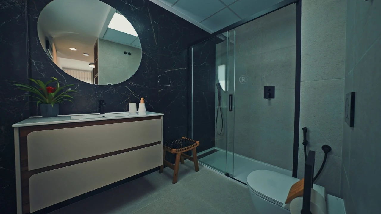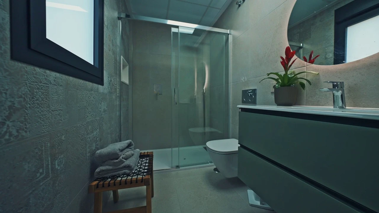 There is: open parking, laundry, dining area, green zone, underfloor heating, central air-conditioning, heating, аerotermia, built-in wardrobe, fully furnished, aluminum windows, double glazing, satellite dish, household appliances, security door, intercom, electric blinds, window shutters, electric gates.